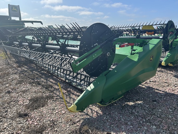 one season HD45F, course knife, flip over ,reel, wing leveling, flex. spare knife 1,550 acres.