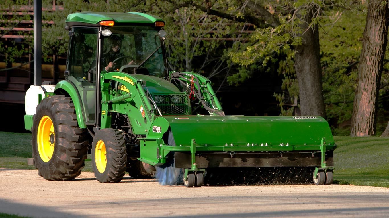 NOTE: By mounting wheels in front of the brush with the dethatching bracket installed, better control of ground pressure can be achieved.