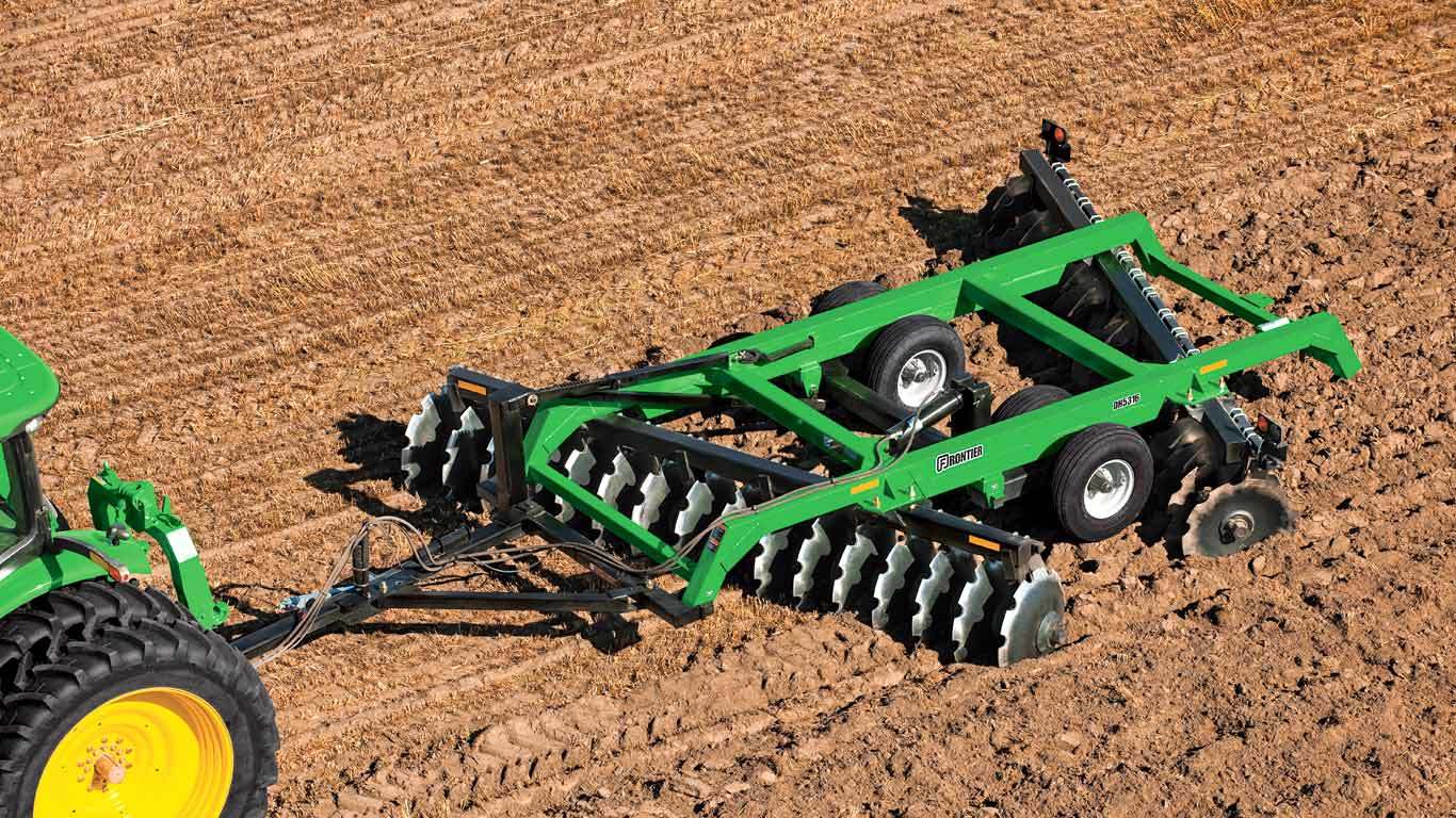 Disk blades on the DH53 Series Offset Disks are available in 71.1-cm, 76.2-cm, or 81.3-cm (28-in., 30-in, or 32-in.) diameter. The weight per blade on these disks ranges from 152.9 kg to 241.8 kg (337 lb to 533 lb) for superior penetration in tough soil conditions.