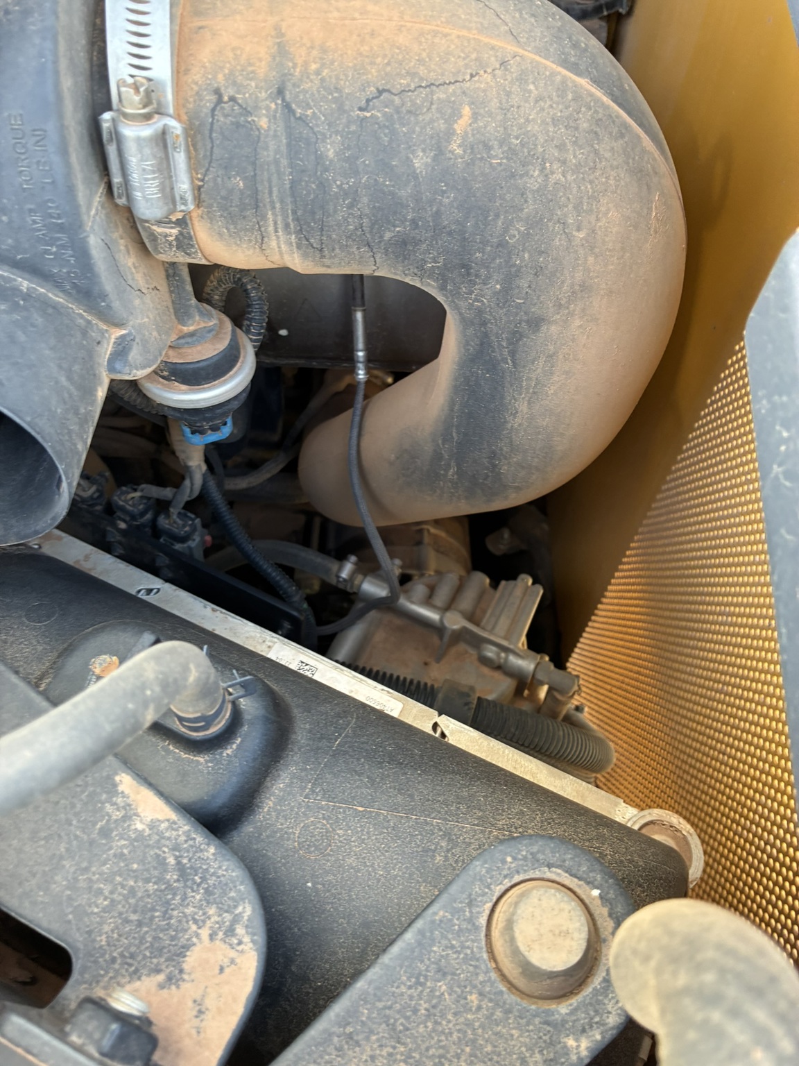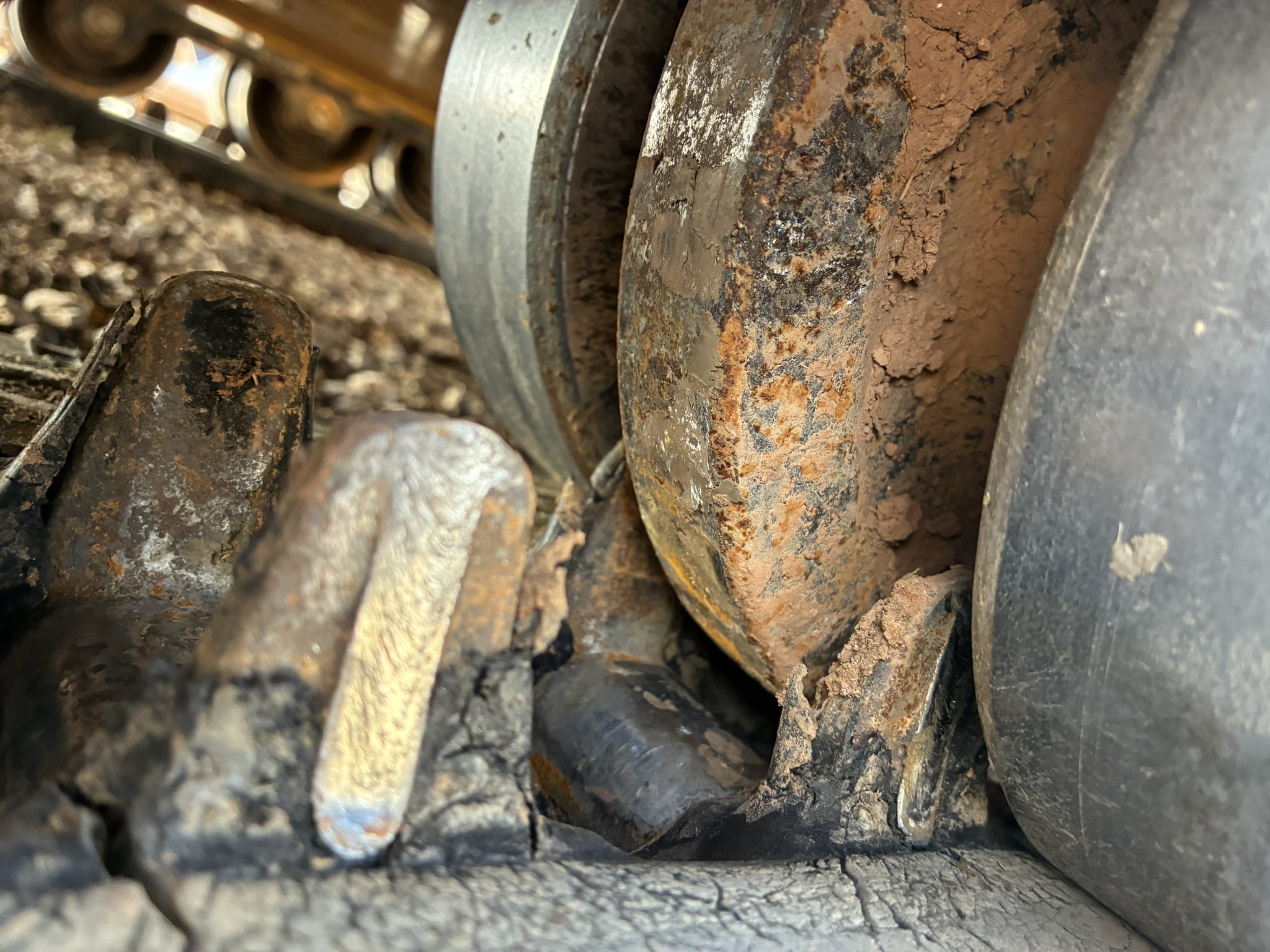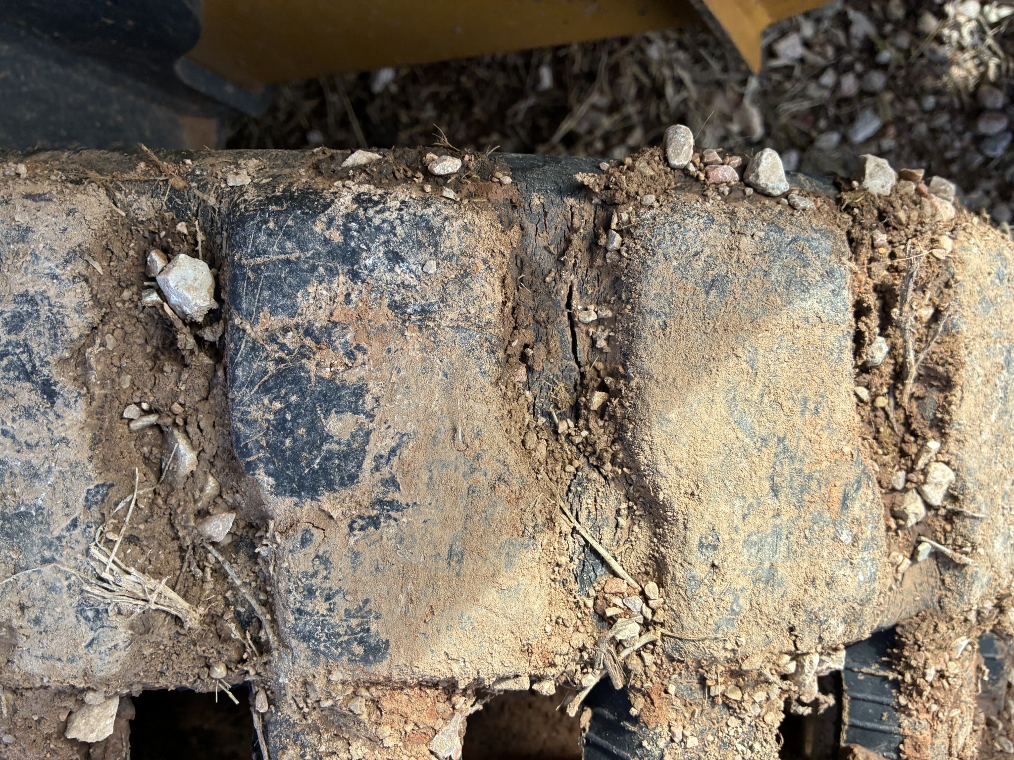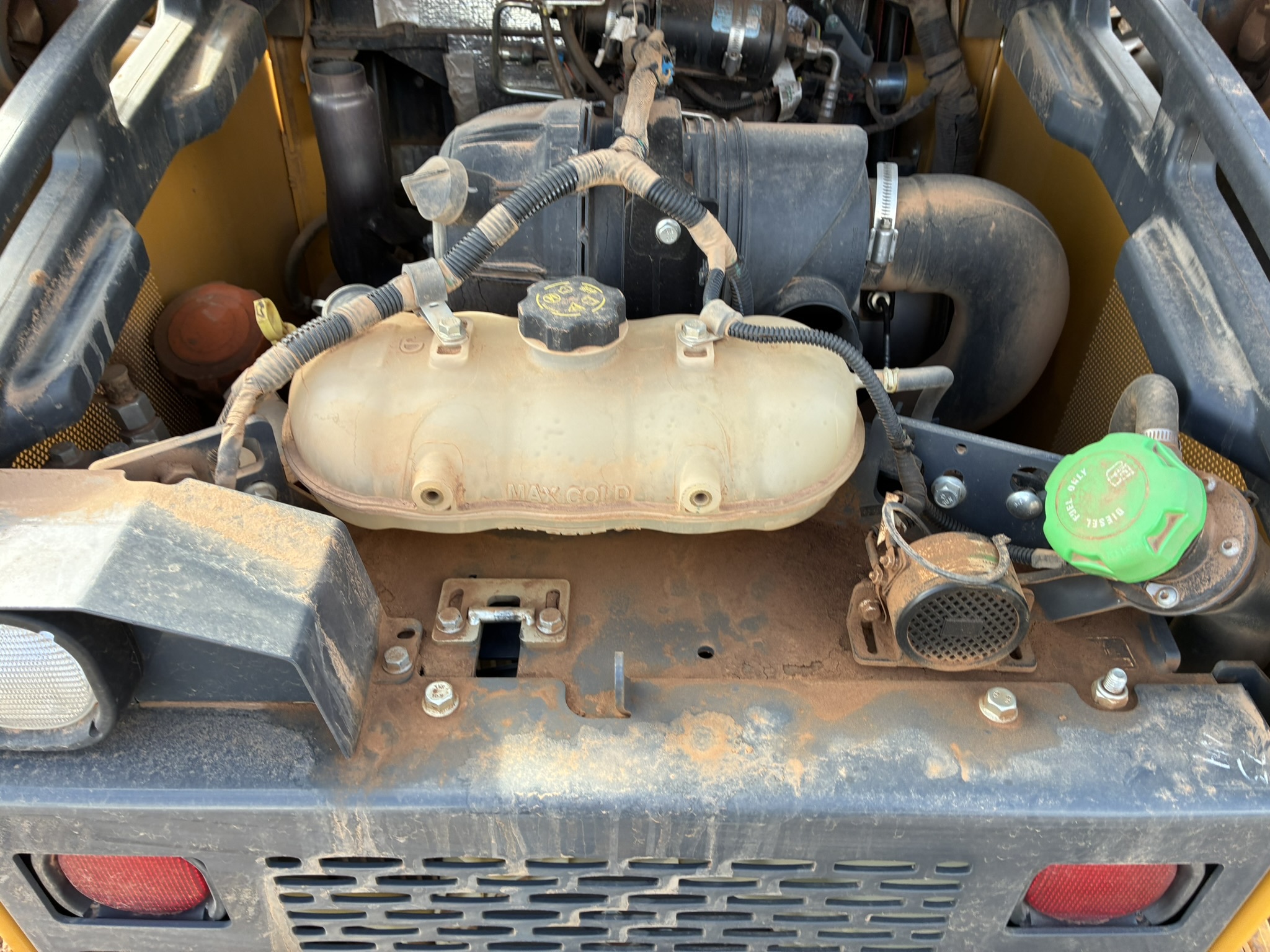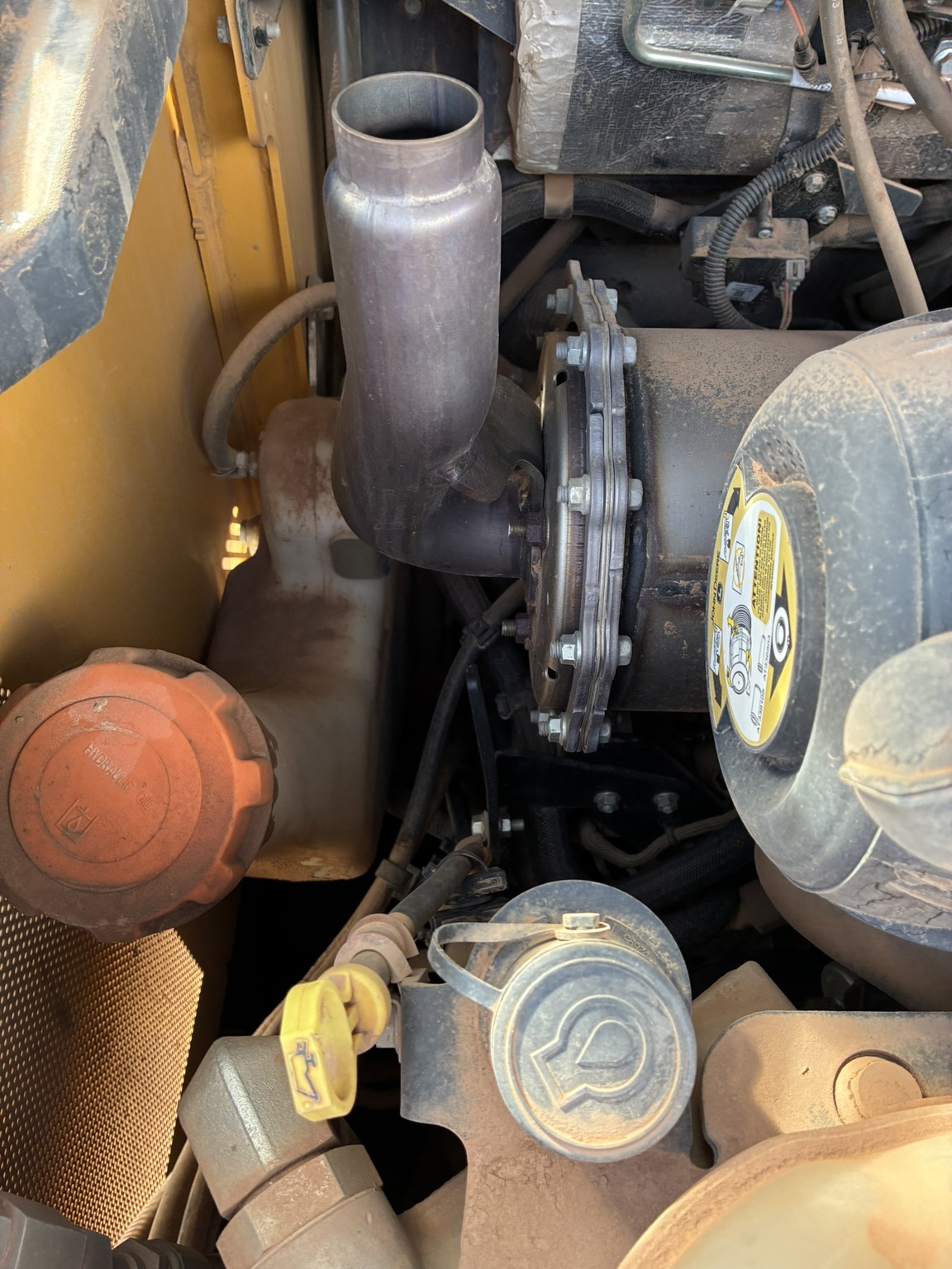 CLEAN lease return with only ___ hours, NEW John Deere wide Zig-Zag tracks, cab/heat/ac, speed, self-leveling, air ride heated seat, joystick controls with attachment control, cold start package, radio, 78″ bucket, and 3 sets of counterweights.