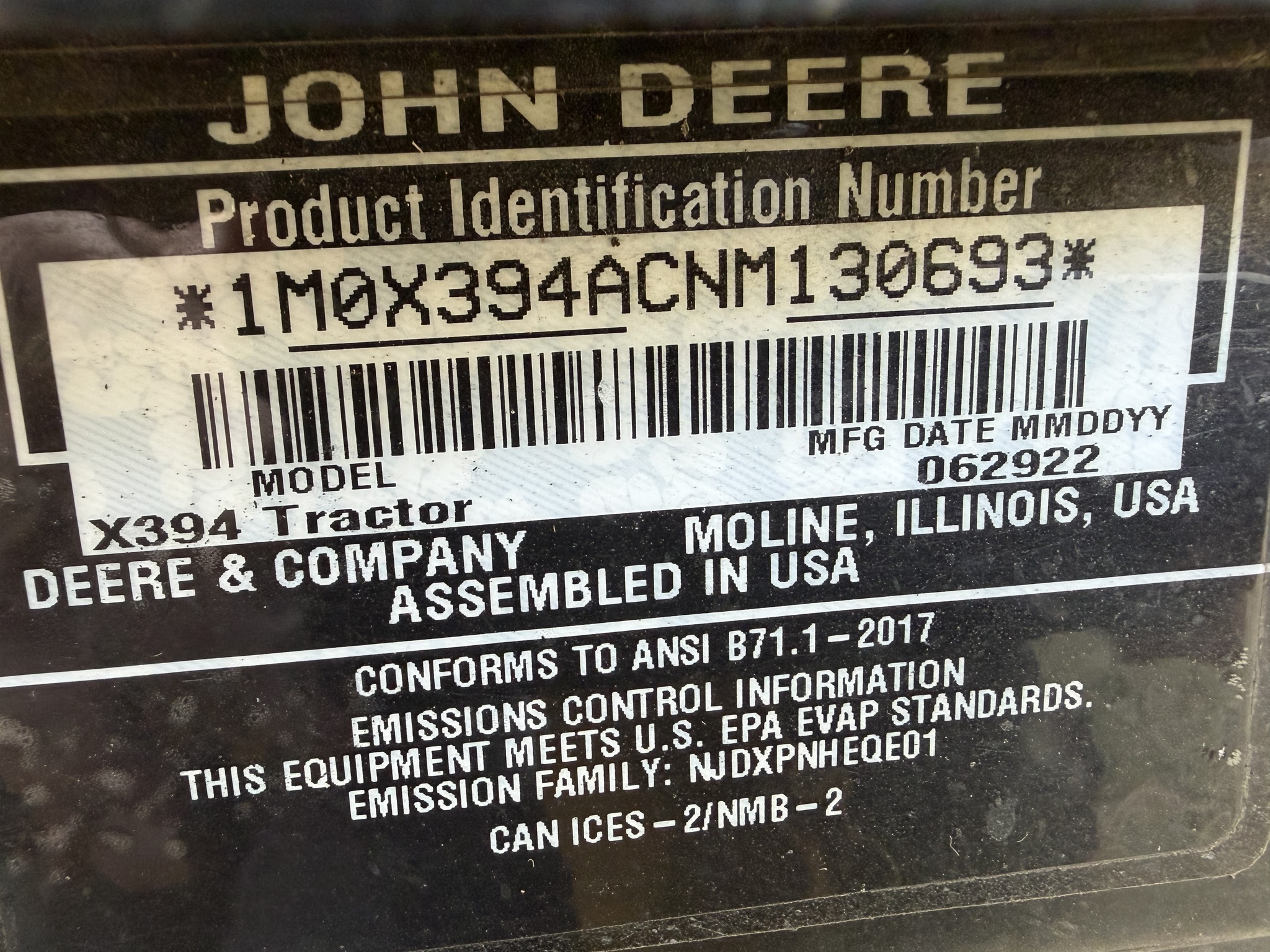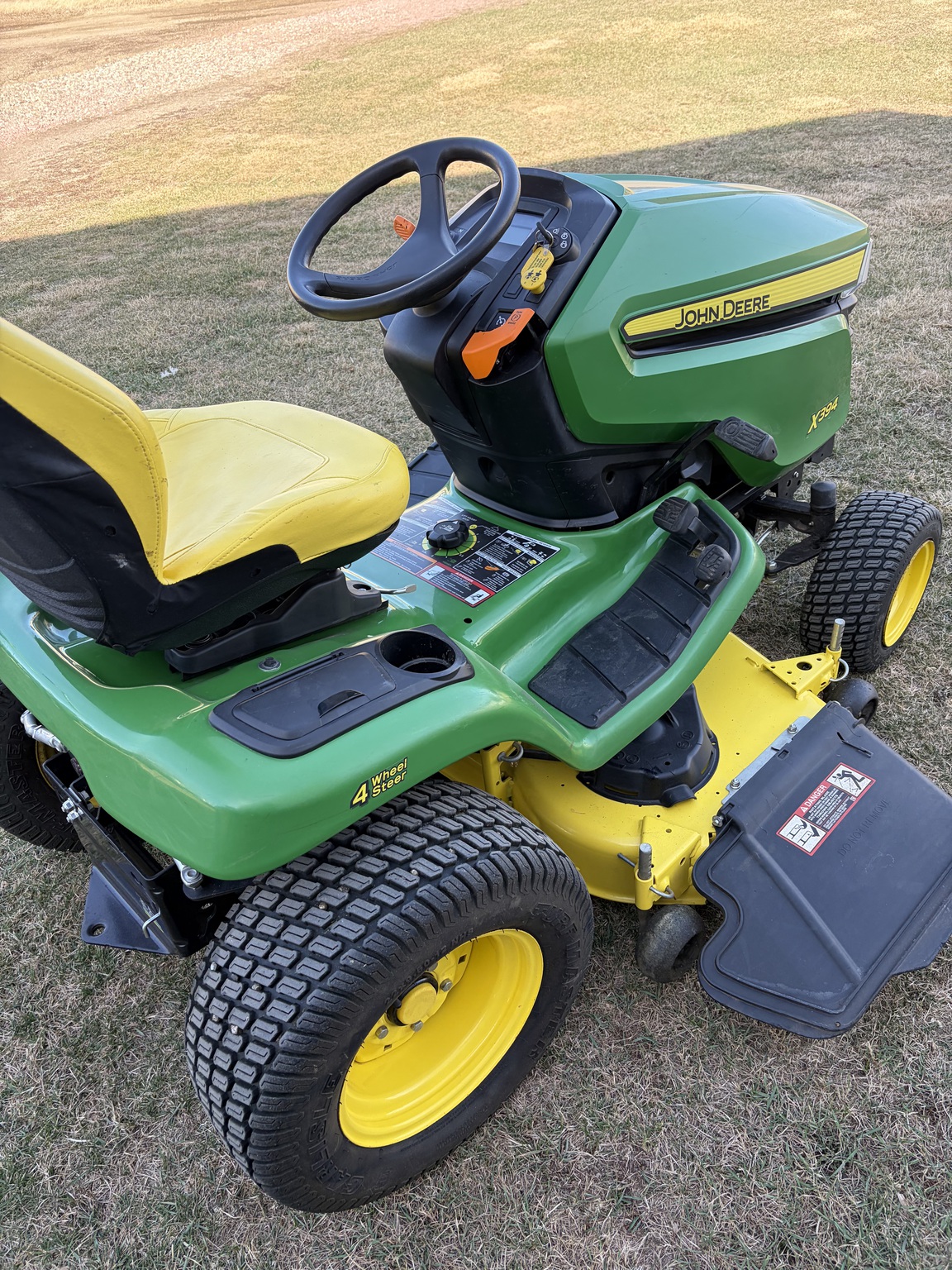 Very well maintained X394 mower with 315 hours, 48″ deck, Kawasaki 23hp V-Twin air cooled engine, 4 wheeled power steering, hydraulic deck lift and hydrostatic transmission. Mower has warranty until July 25, 2026. Will be serviced and ready to mow! Mower will be available late June 2026