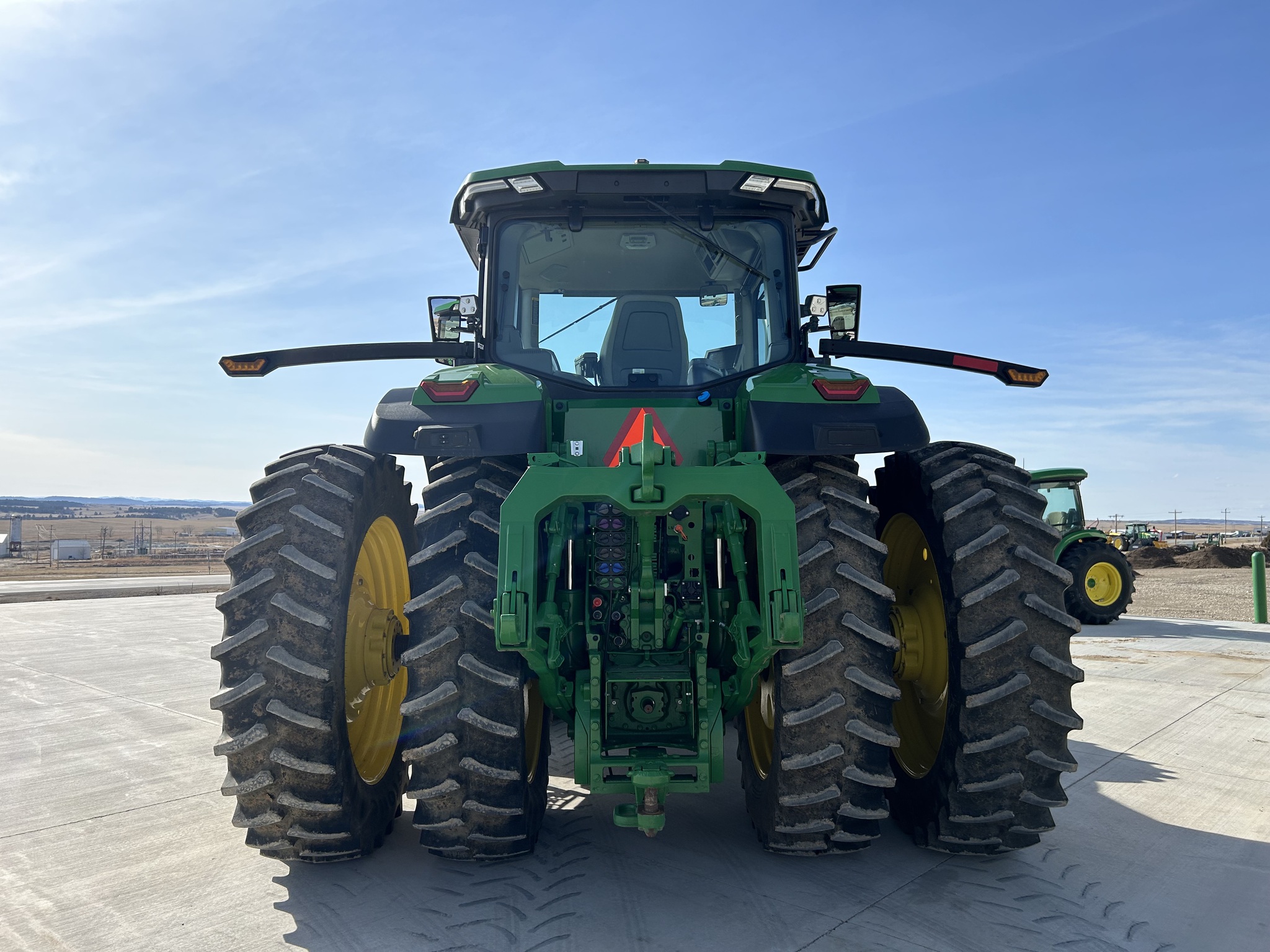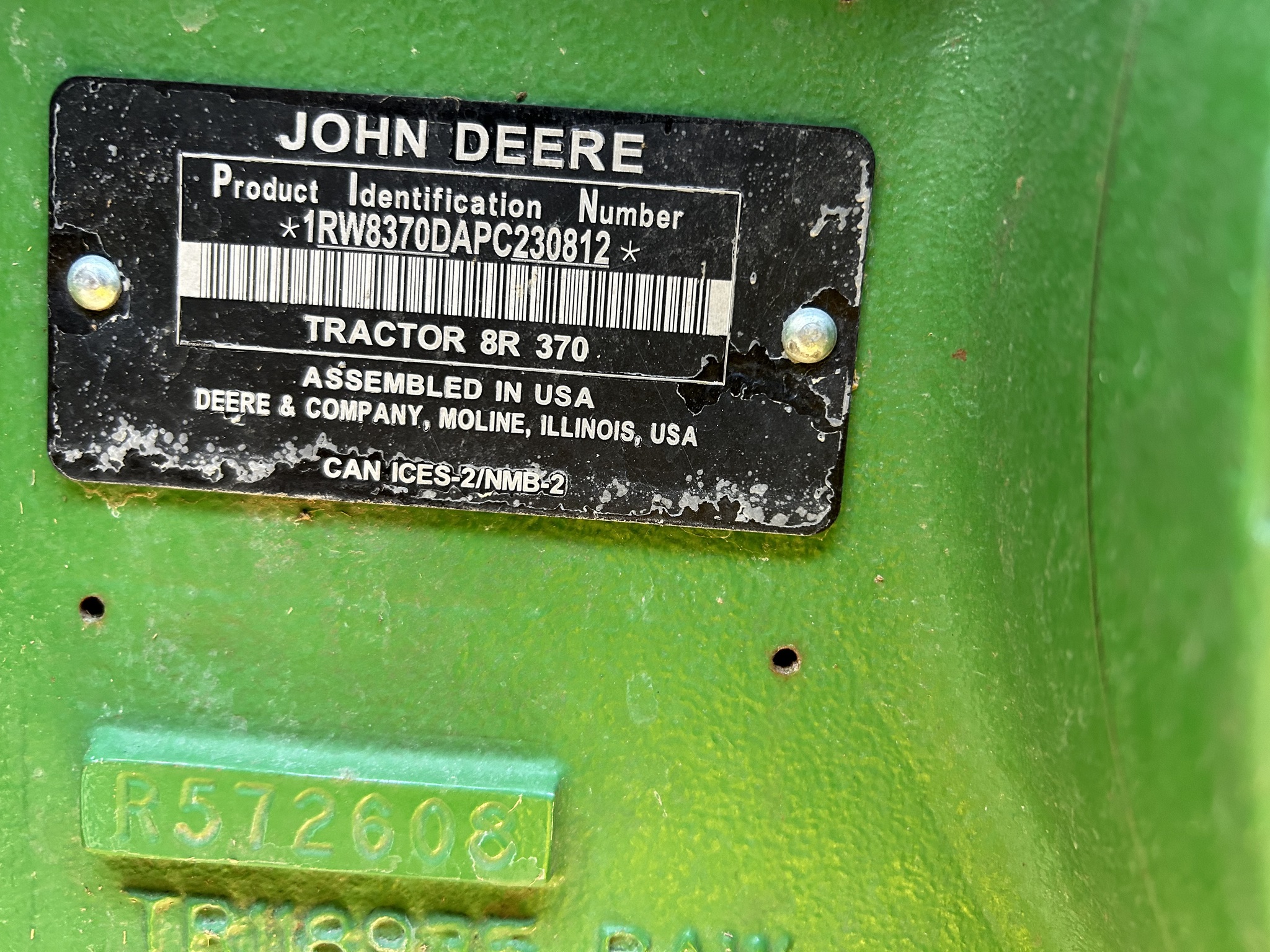 2023 John Deere 8R 370, built to deliver performance and comfort. Equipped with a smooth 40k IVT transmission and Premium 3.0 Activations, this tractor is designed for ease of use and precision in the field. The air seat paired with cab suspension provides a comfortable ride, even on long days. With 6 SCVs and a dual hydraulic pump, it’s ready for demanding tasks. Fitted with 480/80R50 rear duals and 380/80R38 fronts for excellent traction, along with front fenders, rear fender extensions, and premium visibility for maximum safety and control. Balanced, powerful, and ready to work.