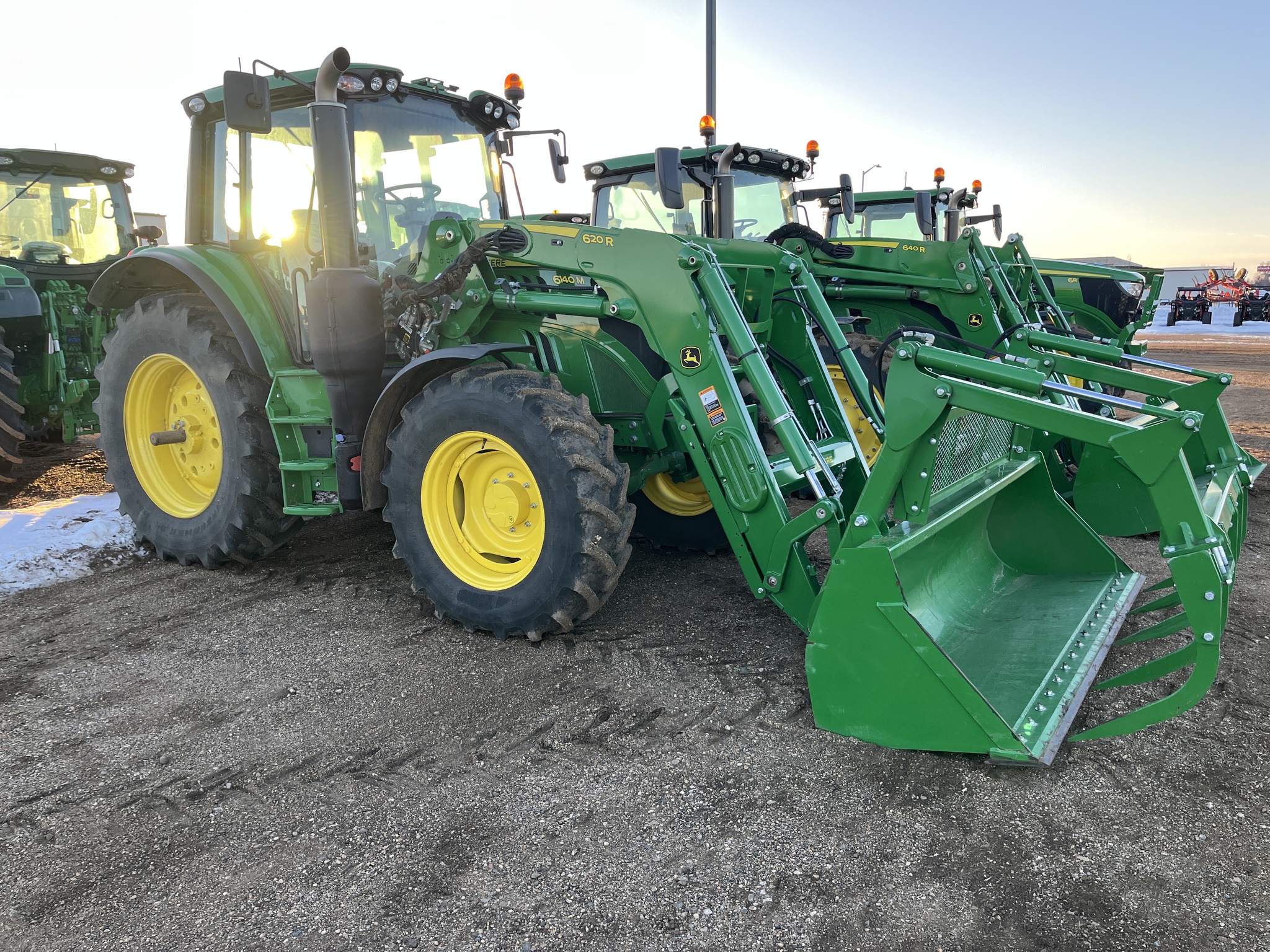 2024 John Deere 6140M w/ 620R NSL loader. Tractor has the 16 speed Powrquad transmission with LH Reverser, triple rear electronic SCV’s, 38″ rear rubber w/ Rack and Pinion axles, 540/1000 PTO. Loader features an 8′ bucket with 5 tine grapple. Tractor has extended Powrgard warranty to August 2027 and is ready to work for you.