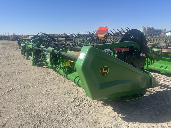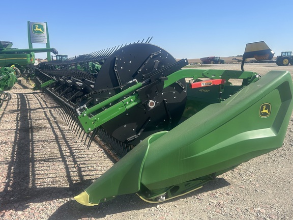 2023 JD HD45F Hinged Draper Flex Platform, Short Long No-Till Sickles with Spare sickles, shark fin, Flip Over Reel.