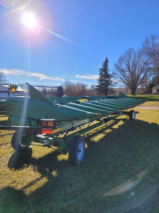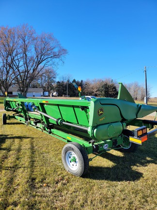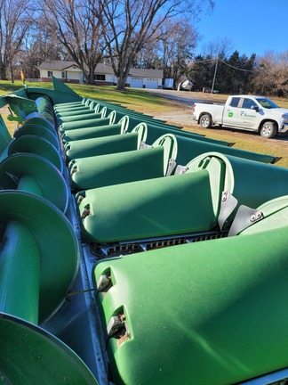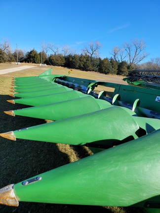 Excellent 2018 JD 712C Cornhead, opposed knife stalk rolls at 75%, Deck plates at 80%, Chains / Sprockets at 70%, Good Poly snoots, Augers, Floor, Height Sensing, Row Sense. Shedded when not in season- looks very nice.