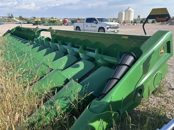 New never used 2023 16 row 30", stalkmaster chopping, S series frame, stalk deflectors on all rows, active end fenders, intermeshing stalk rolls. None as nice as this one!