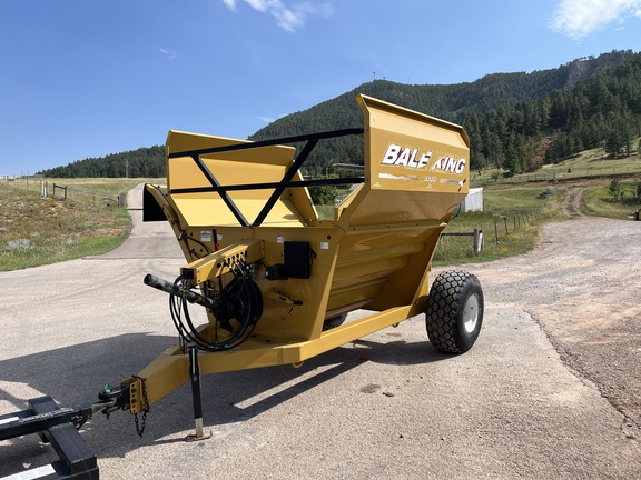 Bale King 5100 bale processor, flotation tires, hydraulic deflector, setup for tractors with two outlets. Call with questions or for more information.