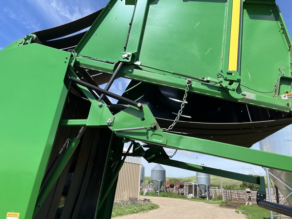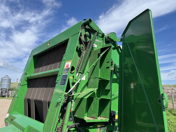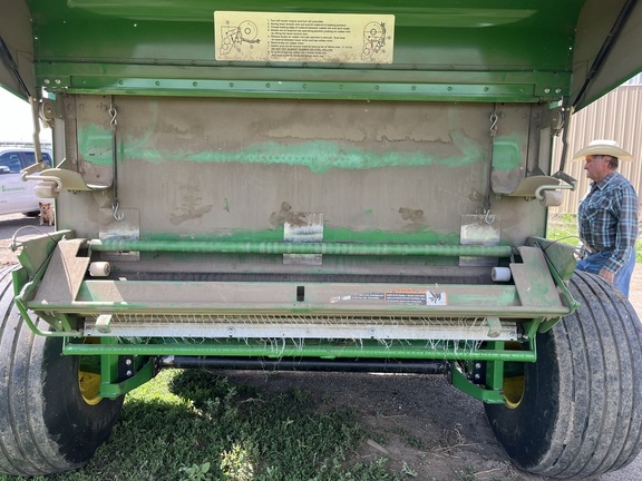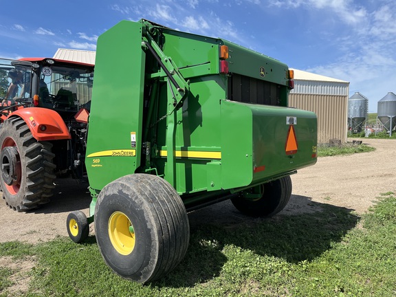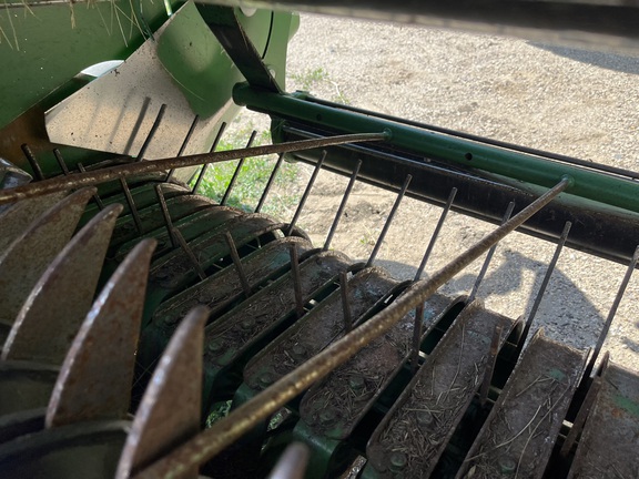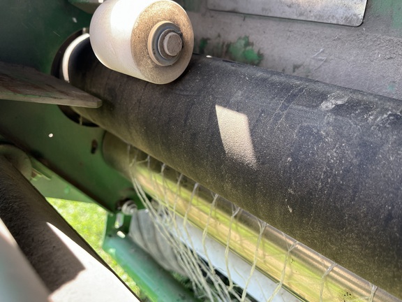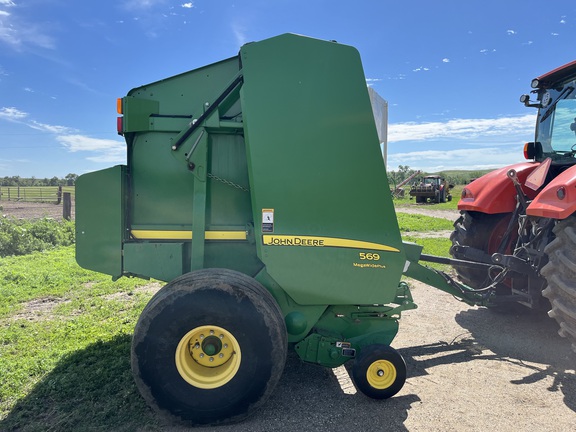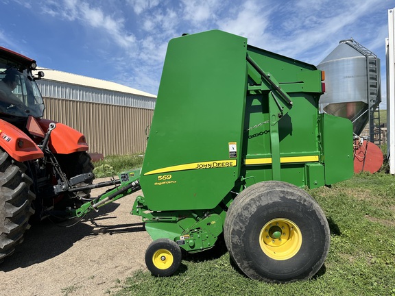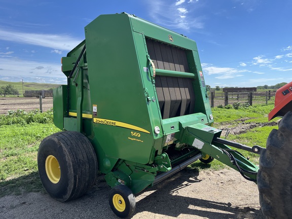 This two owner 569 has been taken care of and kept clean. This baler has been used in mostly grass hay and alfalfa. The net system has only been used a couple of times as this baler was primarily used for twine. The belts and tires are fair and wont need replaced soon. This baler is equipped with moisture sensors and an auto oil system for the chains. Teeth are straight with none missing. This baler is ready for the field!