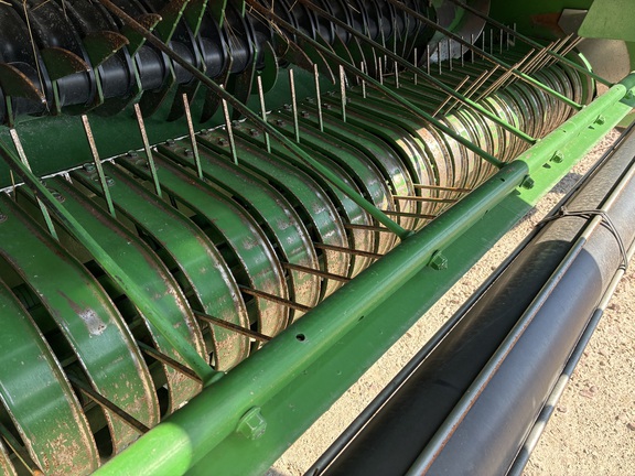 One year old excellent shape baler from customer who trades every year. Only used on prairie hay and alfalfa. Customer changed belt pins every 1,000 bales, greases and blows off daily, and is always owner operated. Highly equipped with MegaWide pickup, HD components, grease bank, bale kicker, big tires, and net wrap (NO twine on this baler). This is a great baler for a lot less than new.