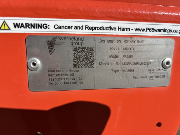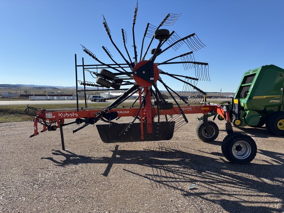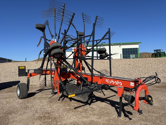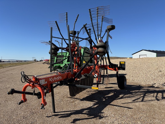 Local One Owner Kubota RA2584 rotary rake. 2 point hitch w/ 540 PTO. 24' to 27.5' raking width. Machine was bought new for the 2023 season and is in great shape and ready to work for your operation. If you have never experienced a rotary style rake, visit with your neighbors and then take advantage of the price savings on this machine.