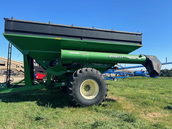 CONSIGNMENT. 2012 1082 Brent Grain Cart...WEATHER-GUARD ROLL-TARP GRAIN CART BRENT 1000 BU (GREEN) 20" CORNER AUGER, 30X32WH/900/60x32 R-1 MODEL 1082 134" AXLE SCALE PACKAGE-TRACKS & 1082-782 50K LOAD CELL, 3.75 HITCH BAR, EZ 512 IND 1 3/4 1000 PTO Shaft 1 Owner Machine, Auger flighting is 80%