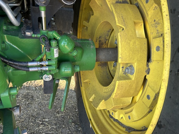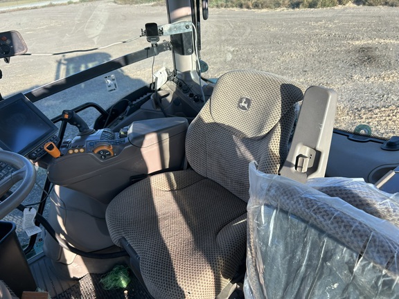 Comprehensive warranty until March 2028 or 2000 hours. Direct drive transmission. Gen 4 4600 command center with auto track activation. 640R self-leveling loader with 8ft bucket and 5 tine grapple. Premium cab with cab suspension and TLS suspension. 480-80R42 and 42085R8 Firestone tires. Two pairs of 450 rear weights.