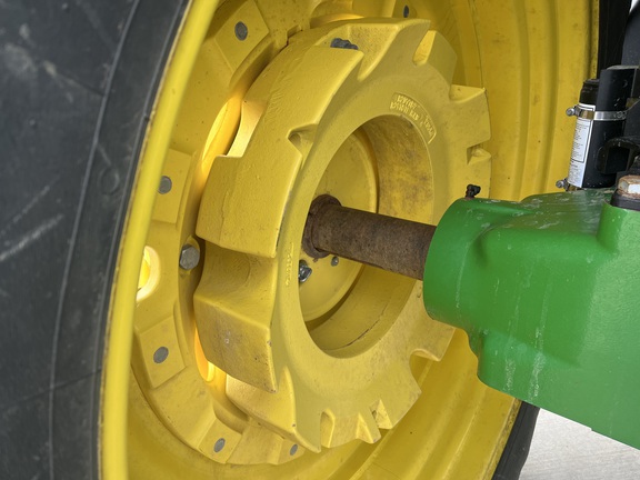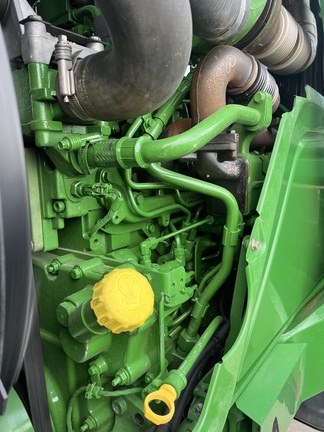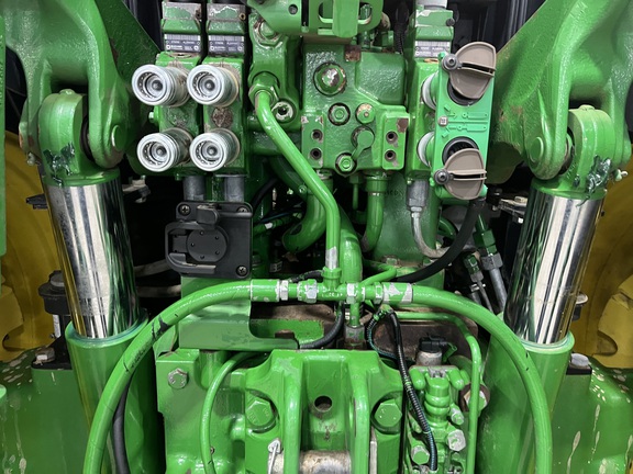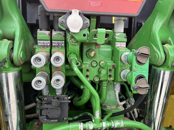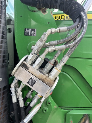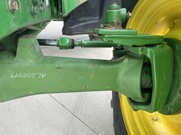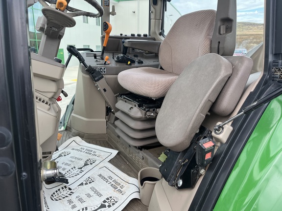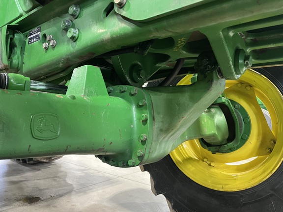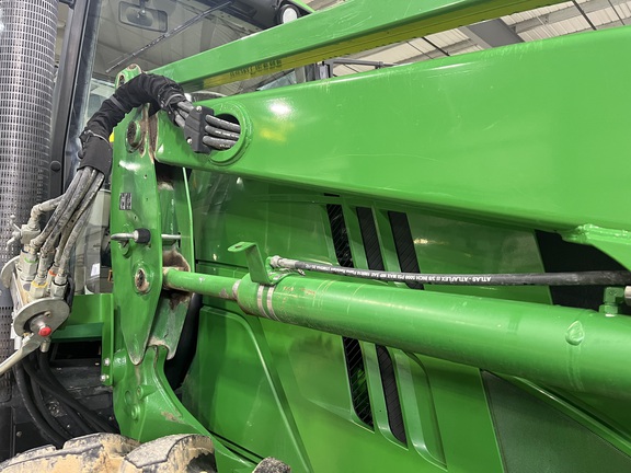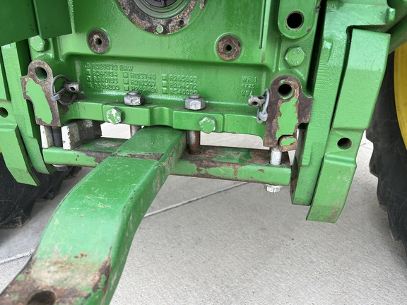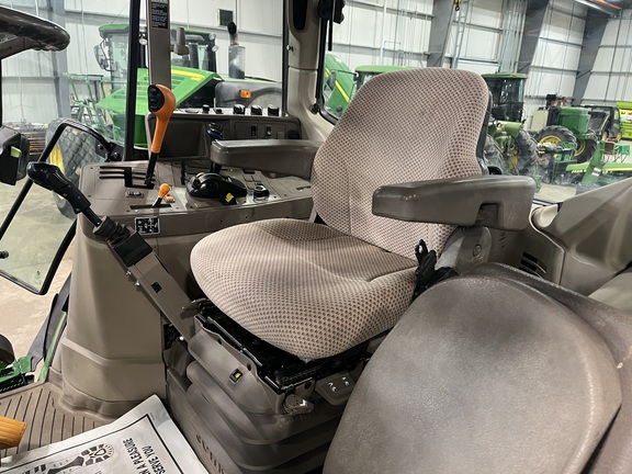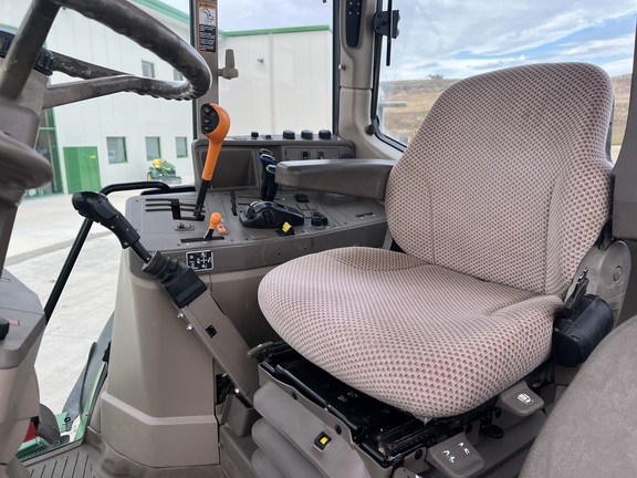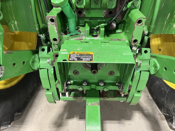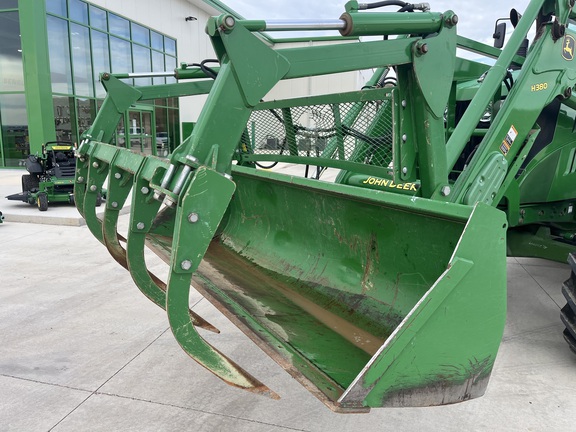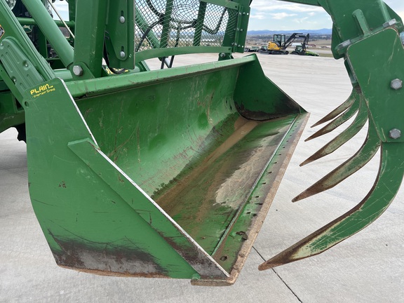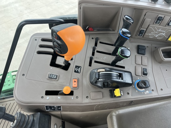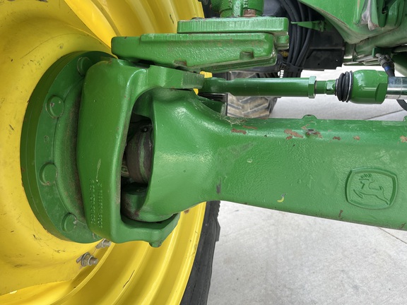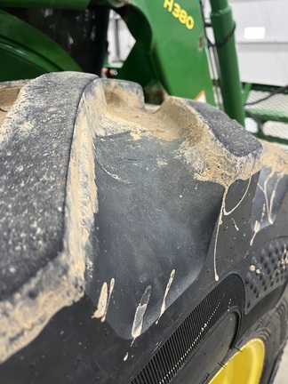 CONSIGNMENT. 2015 (customer purchased in 2018), 4455 hours. New complete John Deere Reman engine with warranty at 4453 hours (October 2025) in our shop. Front axle pivot pins and bushings replaced. 20 speed Powrquad trans, triple rear scv’s, 540/1000 PTO. H380 SL loader with 8’ bucket, grapple, 1065 lbs rear wheel weights per side.