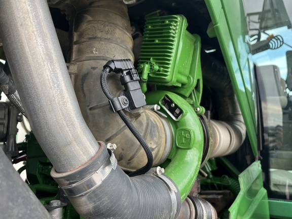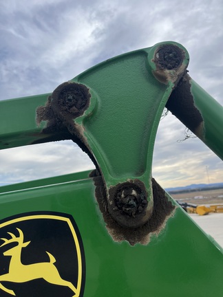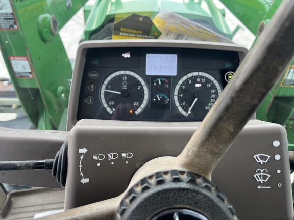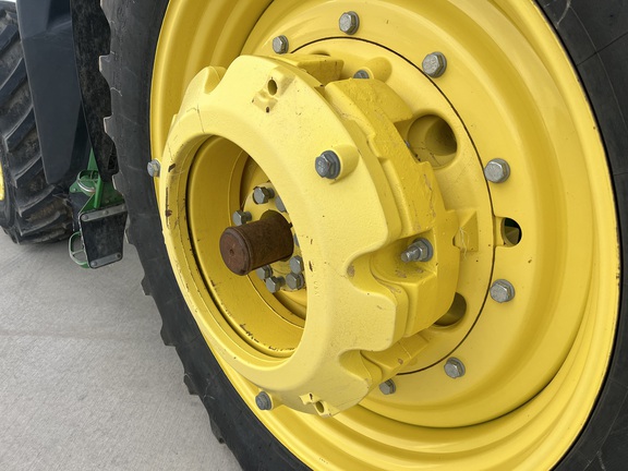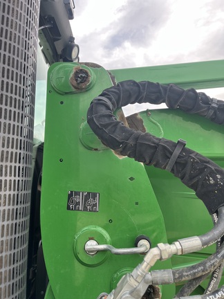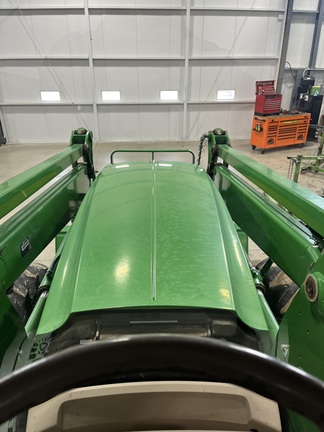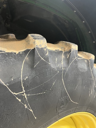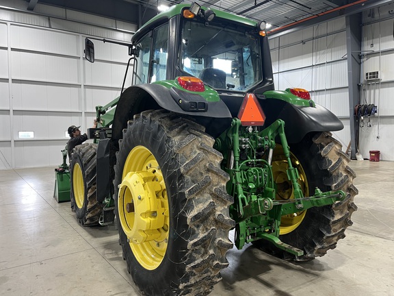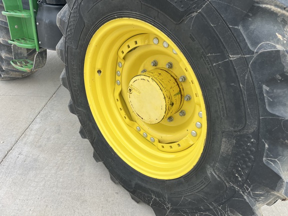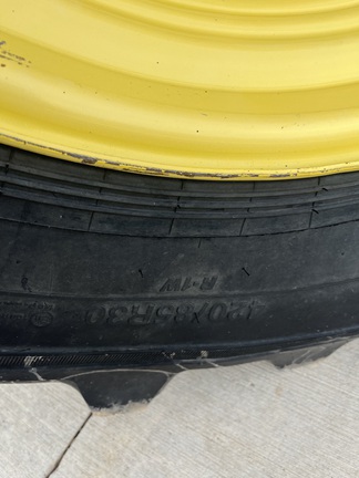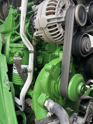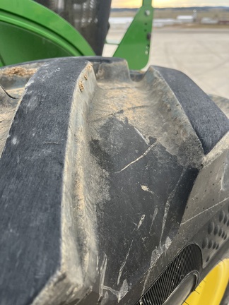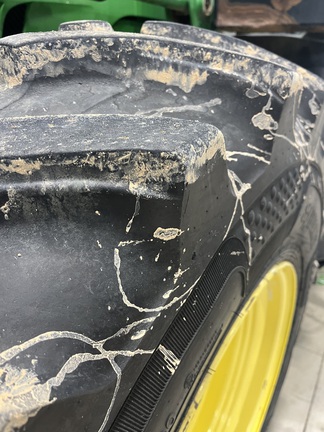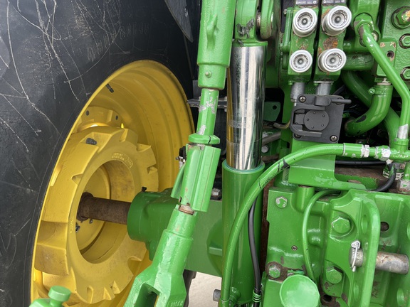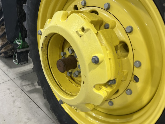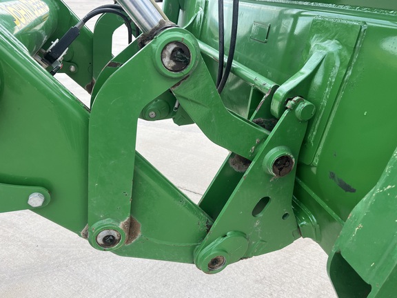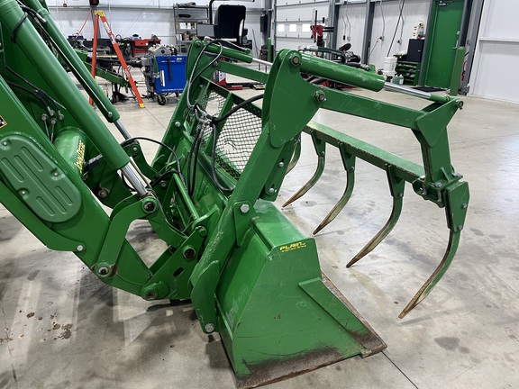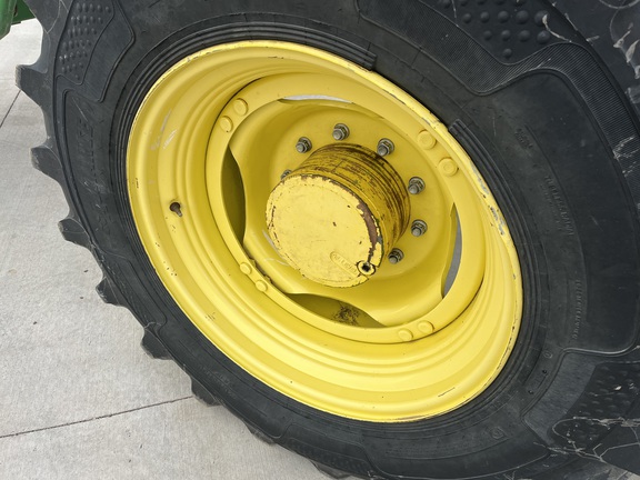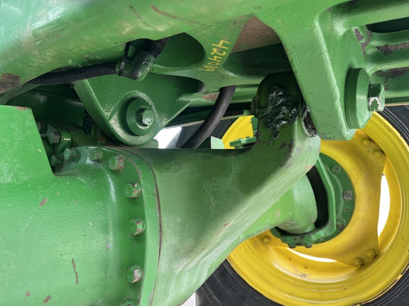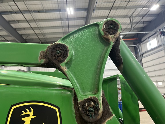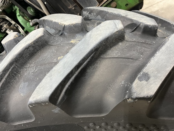 CONSIGNMENT. 2015 (customer purchased in 2018), 4455 hours. New complete John Deere Reman engine with warranty at 4453 hours (October 2025) in our shop. Front axle pivot pins and bushings replaced. 20 speed Powrquad trans, triple rear scv’s, 540/1000 PTO. H380 SL loader with 8’ bucket, grapple, 1065 lbs rear wheel weights per side.