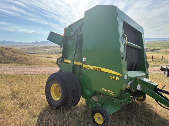 John Deere 568 loaded baler, net & twine, big tires, push bar, mega-wide and hydraulic pickup lift. Baler has been operating in the field all summer, belts are down to last diamond and drive roll pads are worn down but still a good solid baler.