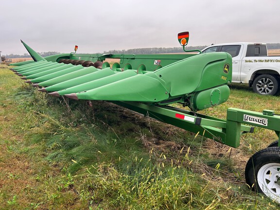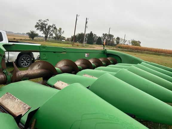 2014 612C. 360 Yield Center chain rollers. Header height sensing with new sensor wands. Sprockets, chains and deck plates in good shape. No holes in the floor pan. Lankota stainless wear strips on snoots. Excellent shape used 612C.