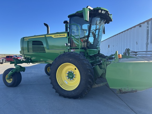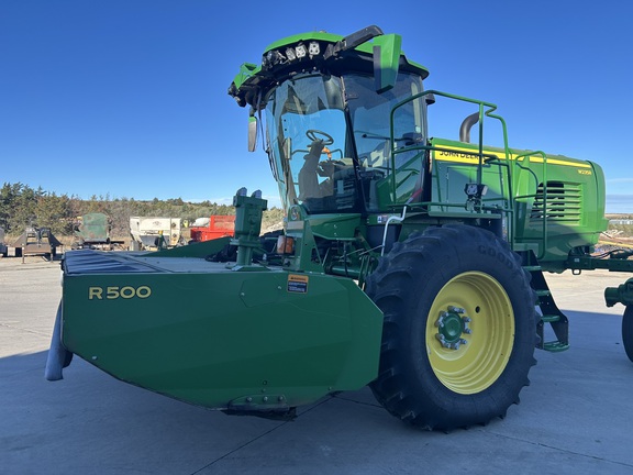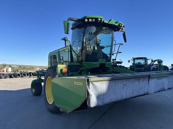 Solid windrower with V10 steel conditioner. Premium cab. Gen 4 4600 processor with auto track. (No globe). Touch set function on R500 16 ft head. 520-85R38 drive tires and 16.5L 16.1 steering tires. Windrower comes from a good home.