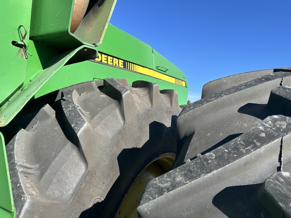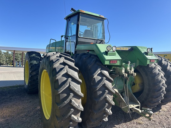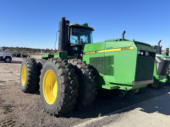 1993 John Deere 8960 with 13,166 hours. Powershift, new duals on back right and front left, 15-20% tread left on front left and back right. Paint still looks good and interior is good. No PTO, was used to pull air seeder. John Deere ATU was installed for GPS.
