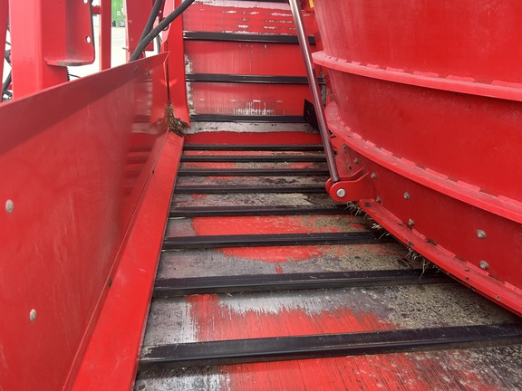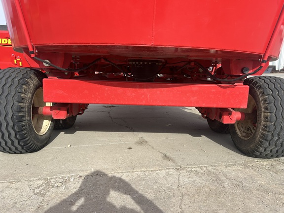 Front door right hand discharge. 36 inch dog leg conveyor with wind guard. Walking tandem axle. Eight Carbide knives are in good shape. 4" LED read out with 640XL Weight-Tronix scale. Solid used feed wagon.