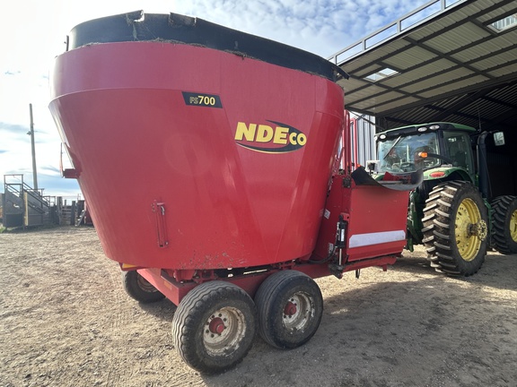 2021 NDE FS700, Single screw, scale readout on ladder, front mount conveyor with 3' dog leg, dual agitation paddles in tank, and tandem axles with 75% tire wear. Unit will be run through the shop for maintenance. Come check it out at your local Belle Fourche Grossenburg Implement!