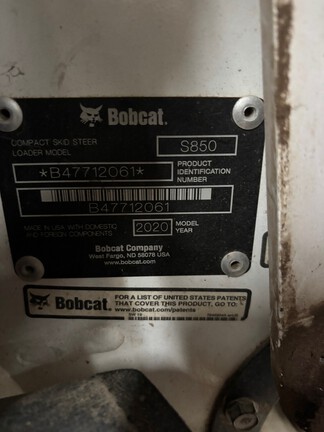 2020 Bobcat S850 skidsteer. 2 speed, high flow, polycarbonate door, hand controls, ride control. Has Bobcat Warranty til March of 2026 or 2000 hours. Quite the Workhorse here!