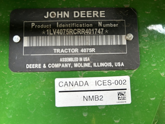 2024 John Deere 4075R, (75hp) like new with only 35hrs on the clock. This machine is loaded up with heated and cooled cab, loader, quick hitch, 540 PTO, grill guard and toolbox. Come check it out at your local Belle Fourche Grossenburg Implement.