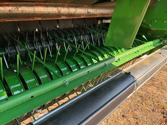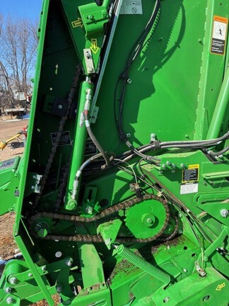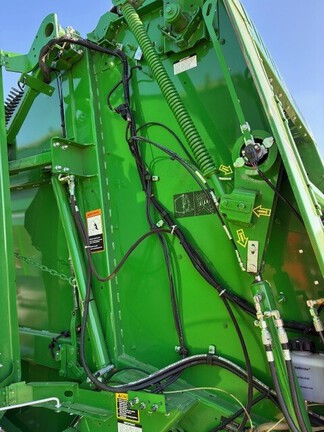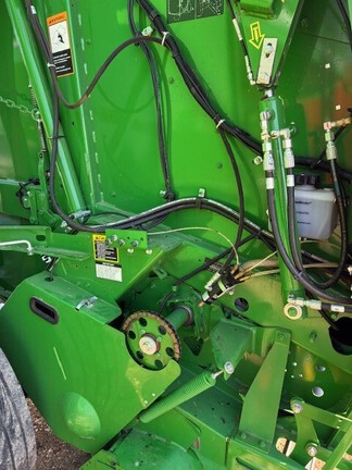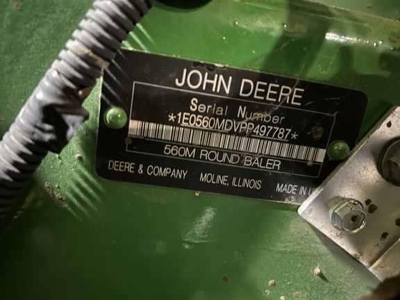 2023 John Deere 560M. 9835 Bales, Mega Wide Pickup, 21.5x16.1 High Flo. Tires, Cover Edge less twine, Grease Bank, Suburban Chain Oiler, Hyd. Pickup, Push Bar, Harvest Tech Moisture sensor. Baler was always stored inside when not used. Been thru Bloomfield service ready to bale.