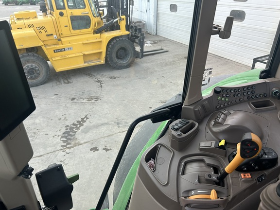 Basic warranty until April 2027 or 2000 hours. Loader ready unit. 20 speed auto quad transmission. Electric joystick and 3 rear electronic SCV. Auto track ready. TLS and MCS suspension. Premium light, radio and seat package. Firestone tires 480-80R42 and 420-85R28. 1800 lbs on the rear.