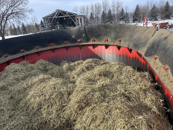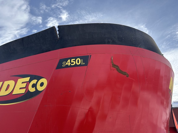 2023 S450L vertical mixer 450cu/ft with RH side door, 54" side conveyor, rubber feed slide, 1,000 pto, RD40XL remote display, 640XL indicator, walking tandems 12.5L-16, 24" carbide knives in great shape, LED road lights and folding ladder. Save big $$$ over new. Will be cleaned up and ready to go! Available late April 2026
