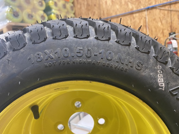 Brand New Carlisle 18X10.50-10 Turf Tires and Rims. Will fit a John Deere Q820E QuikTrak Mower. Regular list over the counter is $670 for the pair.