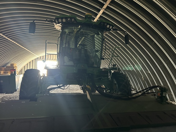 Solid windrower stored inside in the offseason. The machine was used for two years. Premium cab, Gen 4 display with auto track. (No globe). 16ft R500 rotary head with touch set. 520-85R38 drive tires and 16.5-16.1 steering tires. Extended Powergard till July 16 2029 and/or 1250 Hrs. 41 more months.
