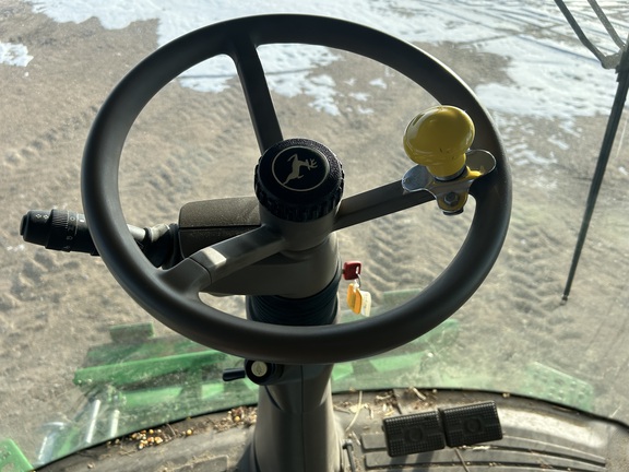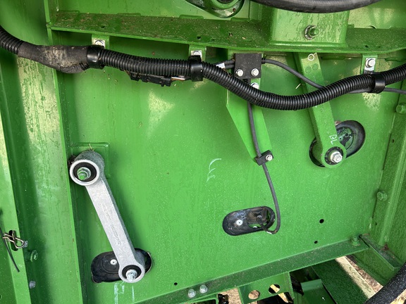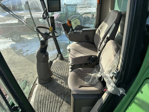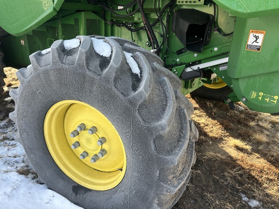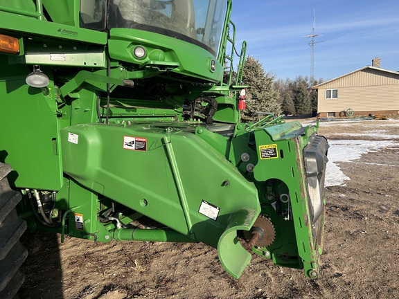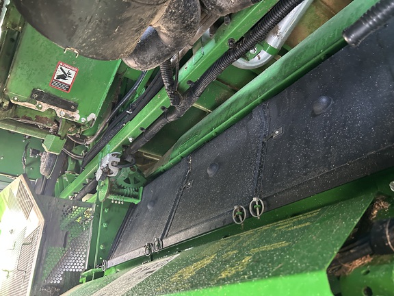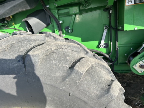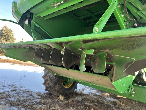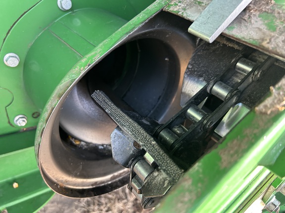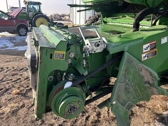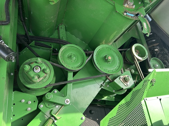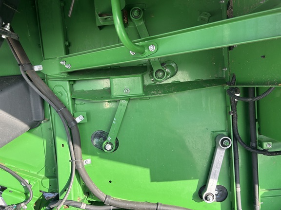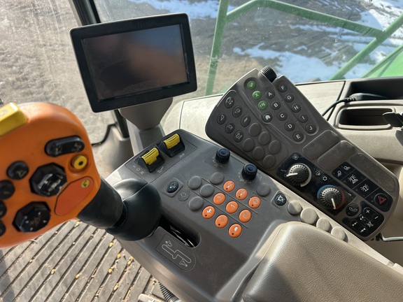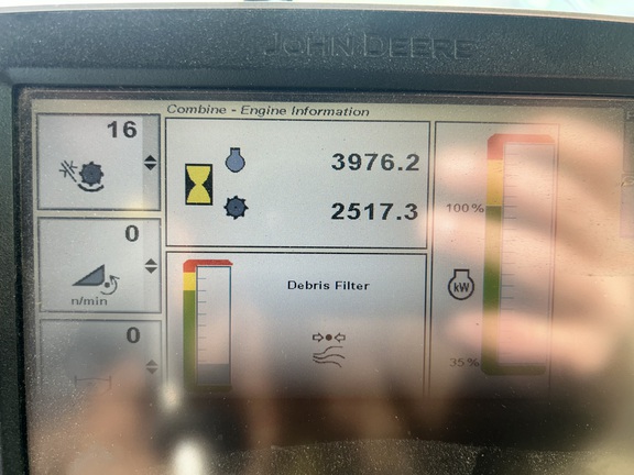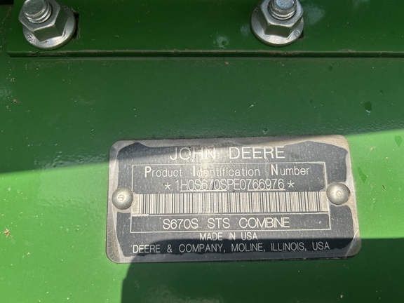 2014 John Deere S670 combine with 3,976 engine hours and 2,517 separator hours. This machine is equipped with ProDrive transmission, variable speed feederhouse, four-wheel drive, premium cab, HID lights, GS3 7" touchscreen display, and a 26-ft unloading auger. It has a manual fold grain tank and manual tailboard with round bar concaves. The customer installed new chaffer and sieve with only one harvest on them, and the feederhouse has been rebuilt. The grain tank gearbox and unloading auger gearbox were replaced mid-season last year. Most belts have been replaced within the last year, it has a new clean grain elevator chain, and fluids were just changed. This combine has been well cared for and is ready to go to work.